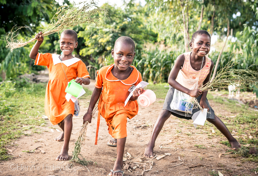横目に通学する子供たち。~リコマ島~ 』