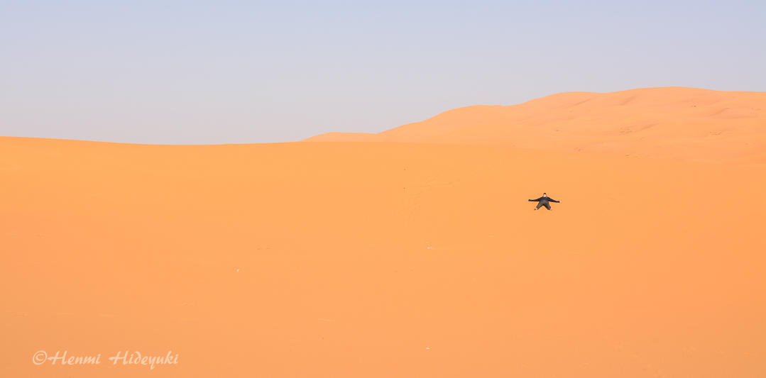 砂漠で寝るのは気持ちいい。(ヒトデみたいなのは僕。)