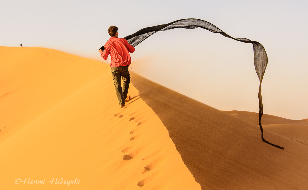 ラクダ使いが、ターバンを外したとき風に煽られ綺麗に舞った。