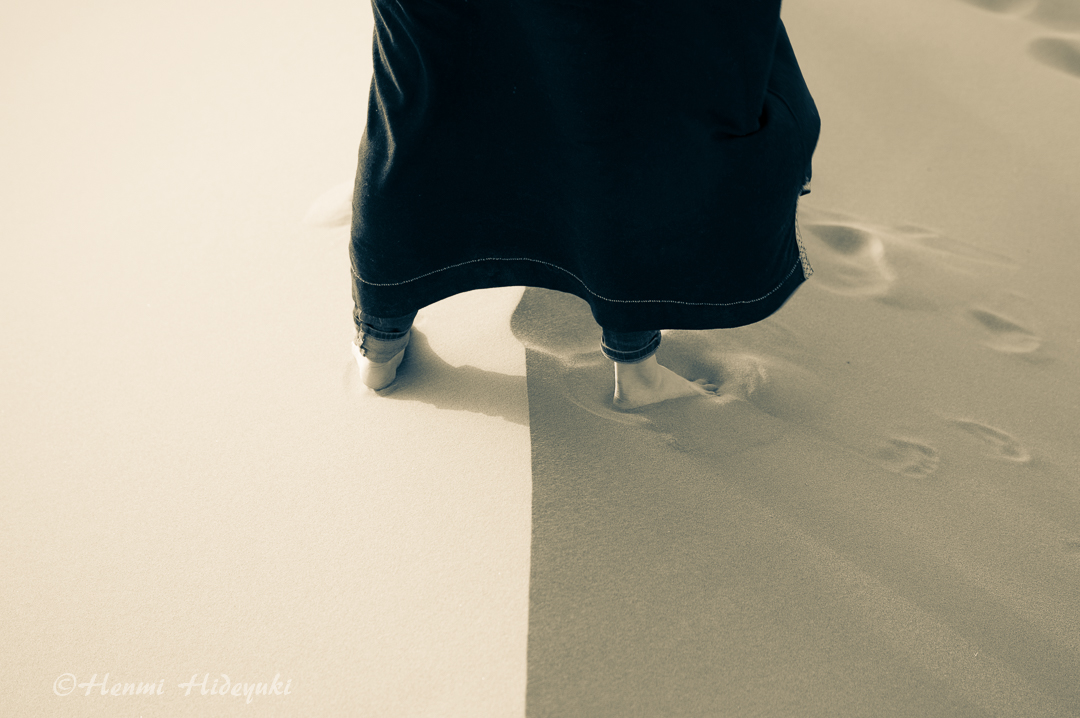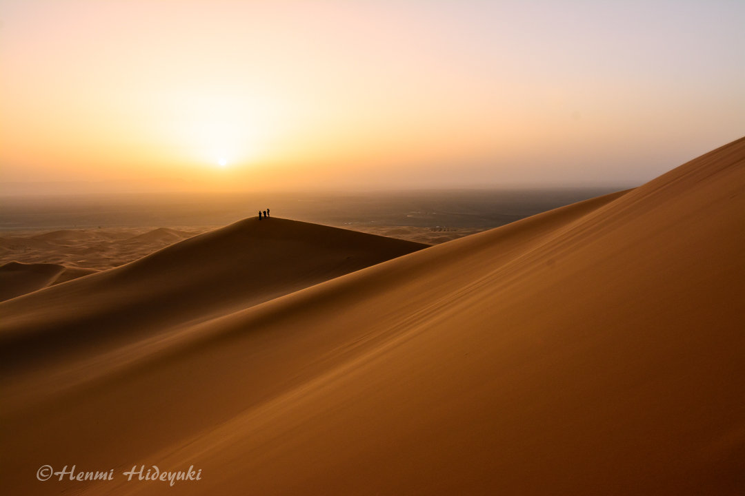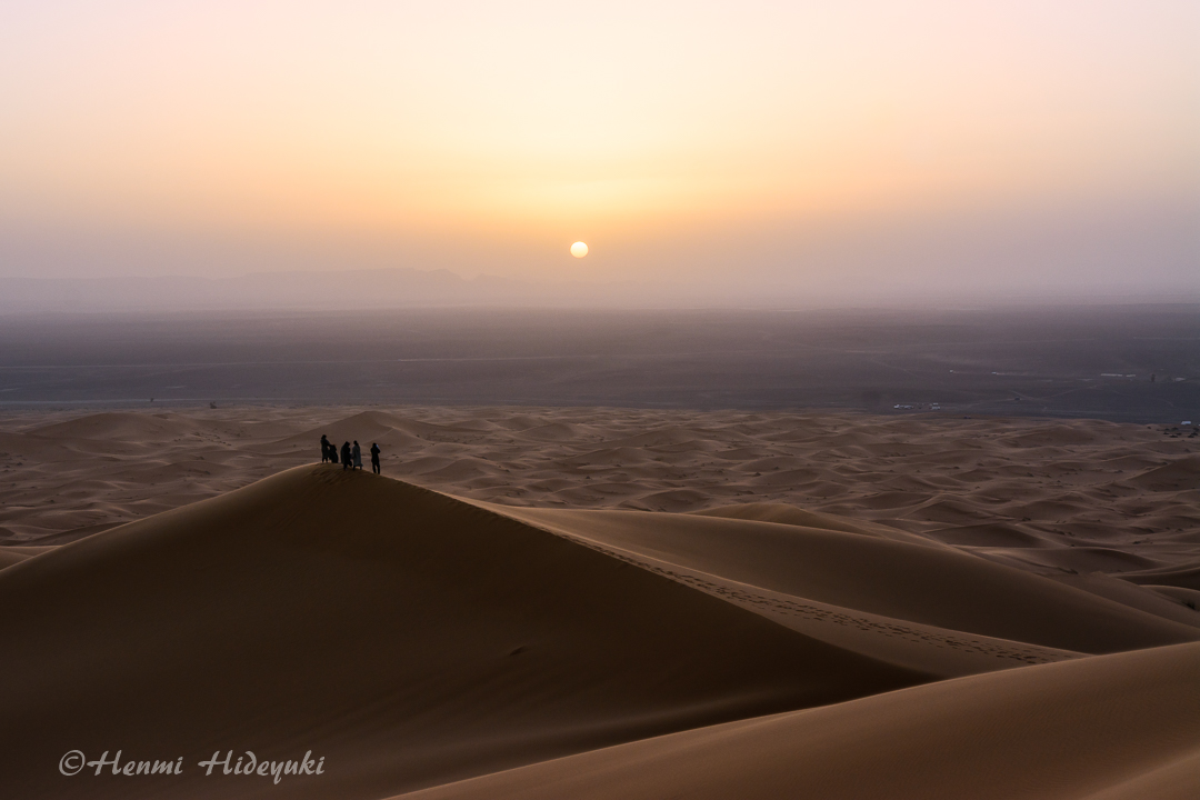 陽が落ちる瞬間を見るために、できるだけ高い砂丘を登っていくのだが