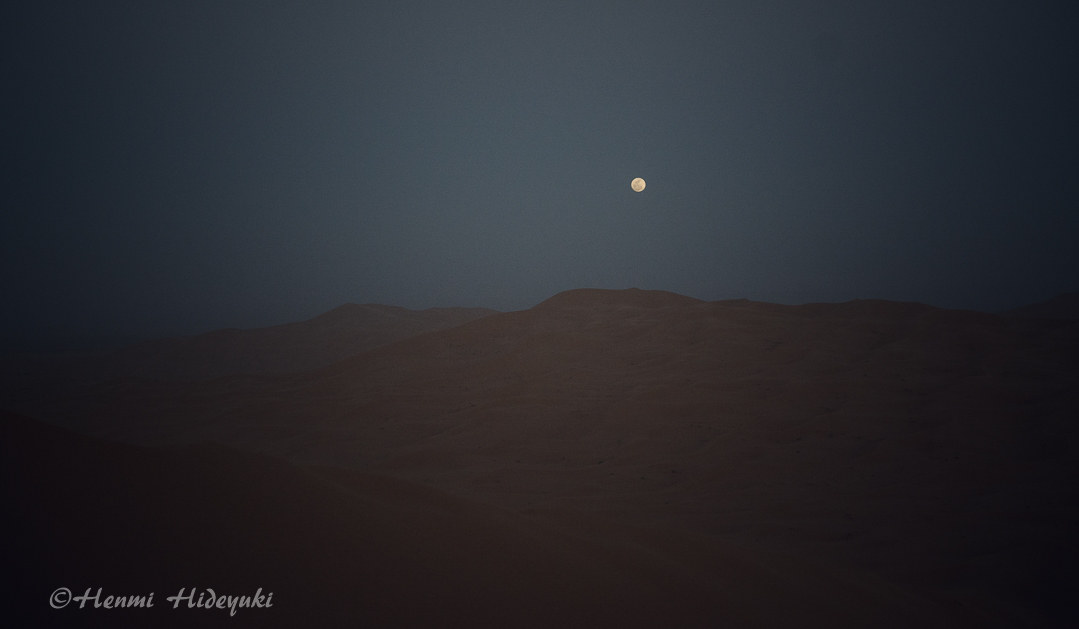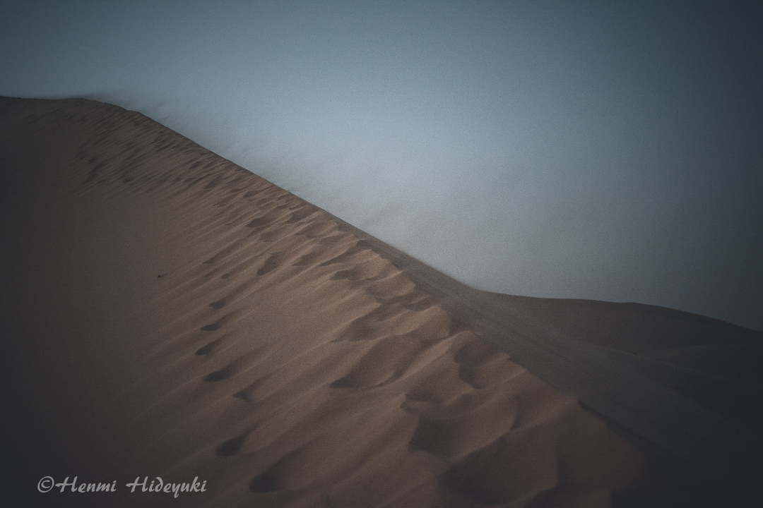 薄暗い砂漠の景色は、神妙な世界をつくりだしている。