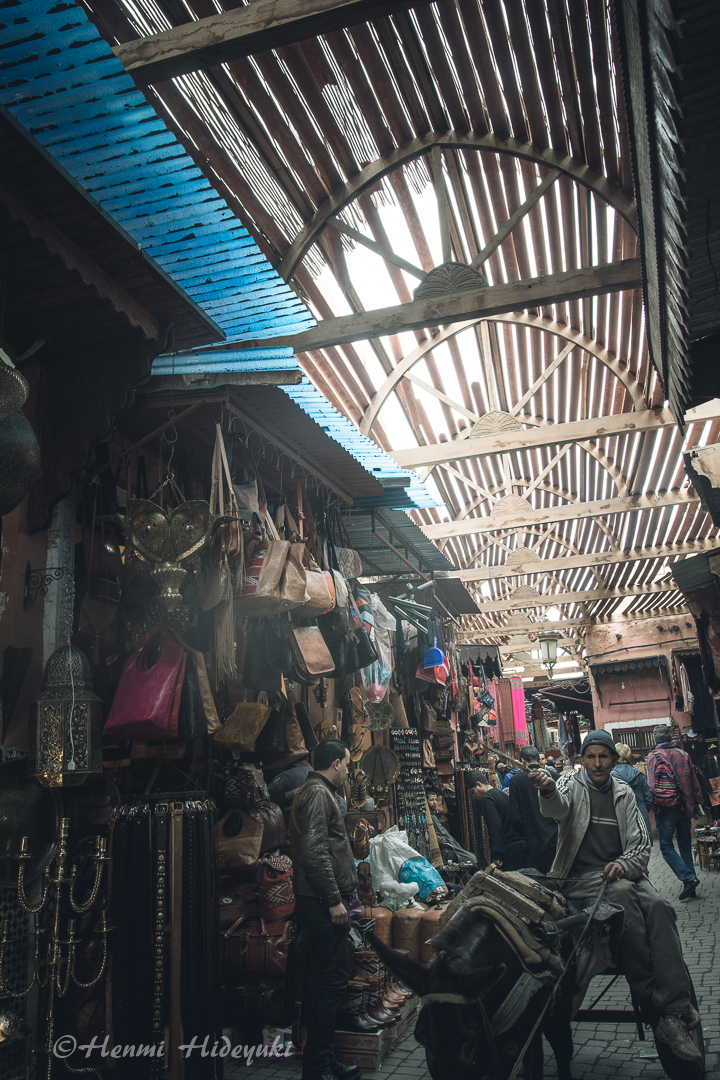 トタン屋根が敷かれた小さな路地、馬やロバに乗って荷物を運ぶ人々が騒がしく行き交う。