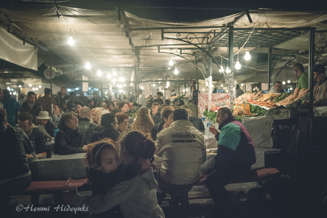 街の中心であるフナ広場には、蛇・猿使いや大道芸がそこら中で繰り広げられ蛇使いが吹く音が鳴り響く。