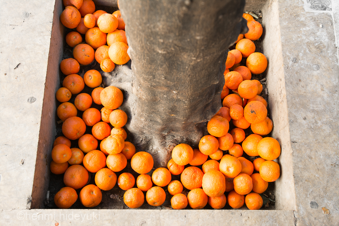 どうやら、街に植わっているみかんは食べるには苦いらしく、香水等で使用されているようだ。